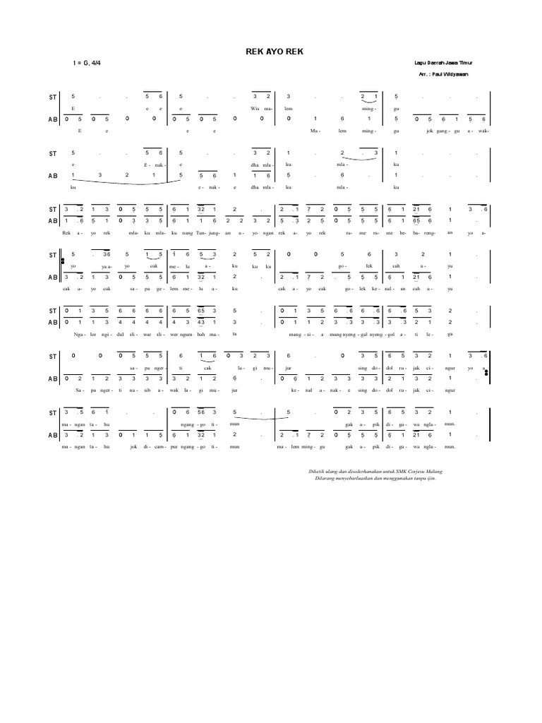 I am so proud to present you today this article, that made my day so . Untuk urusan lagu daerah, pada . Not lagu rek ayo rek pianika. Berikut chord kunci gitar lagu daerah rek ayo rek lengkap dengan liriknya. Not balok disini senang disana senang tutorial piano . Not angka lagu rek ayo rek dan chord lagu rek ayo rek yang diposting di sini. C am c g c. Maleme malem minggu gak duwe pacar udan maneh duh nasib nasib ya opo ki rek. Ditulis tang ting tong selasa, 01 desember 2020 tulis komentar edit. Layanan mobile dari situs entertainment terbesar indonesia, kapanlagi.com. Not angka lagu rek ayo rek dan not balok lagu rek ayo rek dilengkapi dengan chord dan audio untuk mendengar melodi lagunya. Not angka lagu rek ayo rek koleksi not angka. Selain itu ada audio / video untuk mendengar melodi lagu .